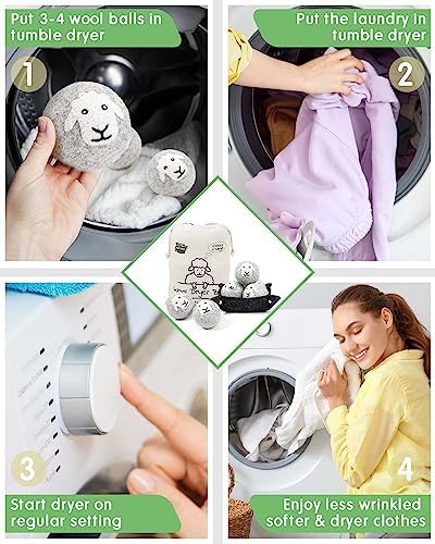 ECO-FRIENDLY ORGANIC WOOL: Our dryer wool balls last for a thousand plus loads. Replaces dryer sheets & liquid fabric softeners, Reduces garbage waste. A healthy, petroleum-free alternative to plastic dryer steamer balls. Made from organic wool, our wool balls for dryer are hypoallergenic and safe for people with sensitive skin. Easy to use and require no special maintenance.