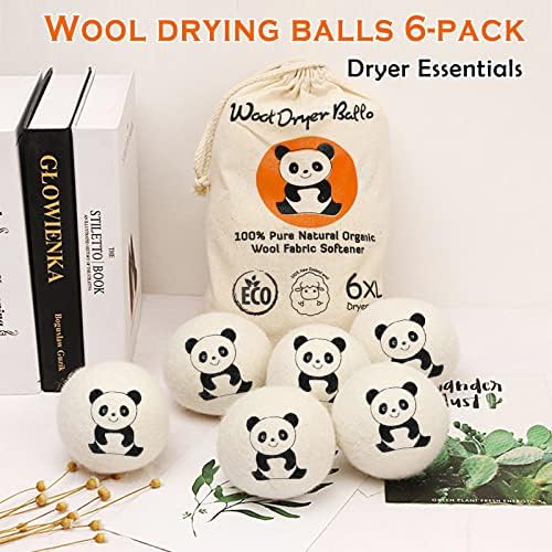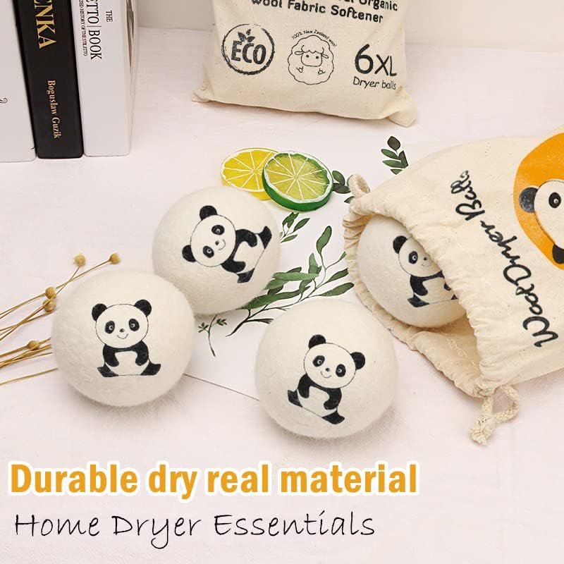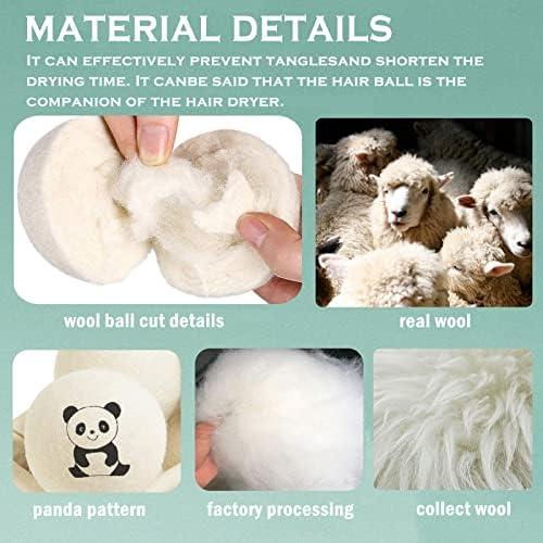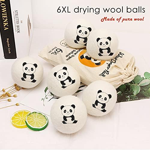 “This wool dryer balls set includes 6 laundry beads with lucky panda graphic, large size wool balls for dryer, perfect for home use and a must-have for drying clothes at home.