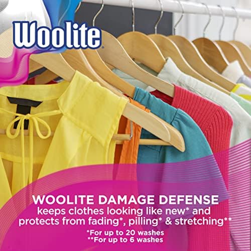 Woolite Damage Defense is a first of its kind formula that keeps your clothes looking like new for up to 20 washes, even synthetics and blends. It protects your clothes from fading, pilling, for up to 20 washes and stretching for up to 6 washes. Woolite Damage Defense is perfect for your yoga pants, favorite blouse, etc. It effectively cleans without the harshness. Woolite Damage Defense is free from optical brighteners, phosphates, bleach, and dyes.
