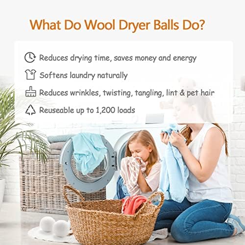 Woolly Molly Wool Dryer Balls, XL Organic Reusable Laundry Balls, 100% Premium New Zealand Wool, Lasts up to 1200 Loads, Saving Energy & Time