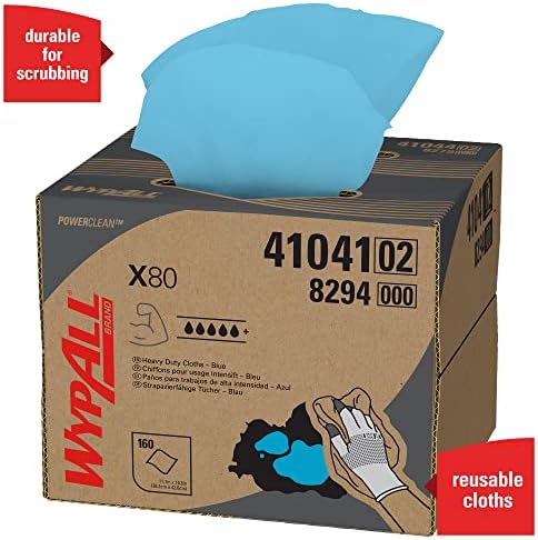 WypAll is the number one brand of disposable wipes in the US and Canada. Maximize performance while minimizing time, effort and product waste. WypAll Power Clean X80 Heavy Duty Cloths feature innovations like high-tech HydroKnit fast-absorbing material and are durable for scrubbing. They are made of soft pulp fibers, bonded to a polypropylene base sheet for absorbency and durability, making them suitable for removing dirt, oil, grime and solvents in industrial and manufacturing businesses. The reusable cloths are reinforced for strength when wet and dry. Plus, they come in a convenient Brag Box (dispenses one at a time, as an alternative to a box of rags) and are so sturdy that they can often be used more than once (once you’ve used them a few times, they’re disposable). These bulk cloths are a great alternative – safer and more efficient – to replace laundered rental shop towels or and cleaning towels. Use them for heavy duty machine- and part-wiping, wiping metal shavings, prepping surfaces with solvents and cleaning rough surfaces. After all, every business gets dirty. But for the toughest grease and grime, you can trust WypAll Power Clean X80 Heavy Duty Cloths.