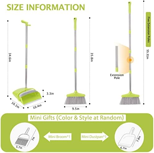 🧹[Wide Application] Ideal for home and office cleaning, suitable for sweeping paper, dust, dirt, hair and pet hair. We also include a mini broom and dustpan set to help you clean up your desktop, the cute dustpan is perfect for kids to clean up their DIY garage, it can be used as hanging storage.