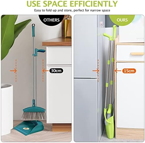 🧹[Great Performance] The thoughtful sweeper teeth help you clean women’s or pets’ hair faster and easier without getting on your hands; the upgraded four-layer bristles are made of PET material, which is more durable and hard to clean heavier trash; the front of the dustpan is equipped with a rubber lip that fits perfectly on the the ground and won’t let dust and such fine trash remain.