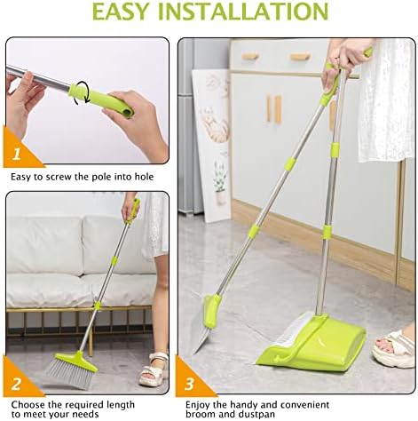 XXFLOWER Broom and Dustpan Set for Home, Grass Green Color, 1-Pack