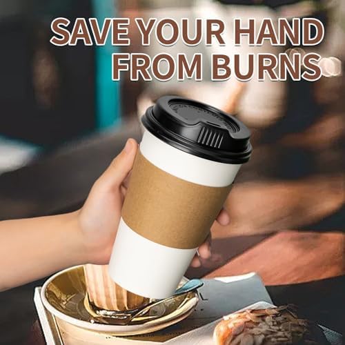 【Sturdy and Leak Free】To go Coffee cups with lids includes a rolled rim for comfortable, leak-free drinking, inner lining reduces condensation accumulation.