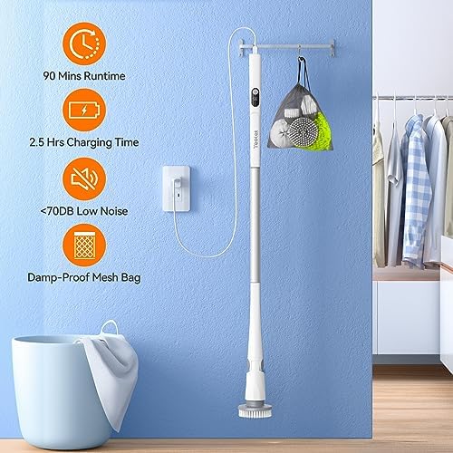 Ultra Powerful & 2 Adjustable Speed: Yeolet electric spin scrubber has 74W DC powerful motor, which is more efficient than others under 24W. 2 speeds to achieve perfect cleaning effect with the assistance of the powerful motor. The High speed(300 RPM) is perfect for deep cleaning, the low speed (250 RPM) is best for Daily Clean.