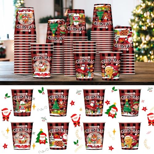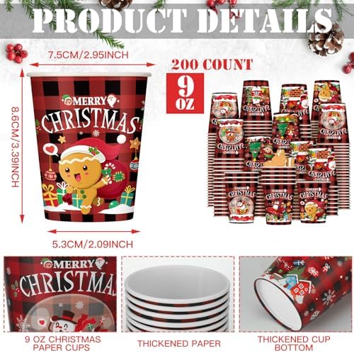 Proper Size: the Christmas disposable hot cups are approx. 2.9 inches/ 7.5 cm in upper diameter, the bottom diameter is approx. 2 inches/ 5.3 cm, the height is approx. 3.4 inches/ 8.7 cm, and the capacity is 9 oz, proper size for you to carry easily