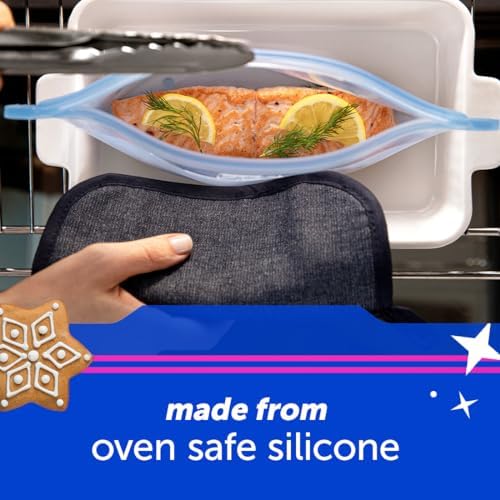 Freeze it. Bake it. Boil it. Microwave it. Ziploc Endurables Large Pouches are designed to go directly from freezer, to oven, to table. Made with durable and reusable platinum silicone they withstand extreme temperatures. Use to bake (up to 425°F) or sous vide or freeze and protection in sub-zero temperatures. The thoughtfully designed Cool Grab Tabs allow for easy handling after heating. Ziploc Endurables Large Pouch is an all-in-one solution to simplify mealtime. The options go as far as your creativity. Secure Seal Technology helps and keep food fresh while stored or frozen. The Large Pouch holds up to 8 cups and is perfect for family dinners. Dishwasher safe (on the top and bottom racks) means Ziploc Endurables Pouches and Containers are easy to clean. They are mindfully designed to be continuously used, reused, then recycled.