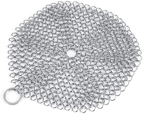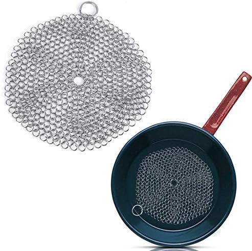 Widely Used: This chainmail scrubber can be ideal used for cast iron, cast iron pans, skillets, stainless steel, a pizza stone, plates, baking sheets, a tea pot, cookie sheets, cauldrons, camp chef griddles, etc.